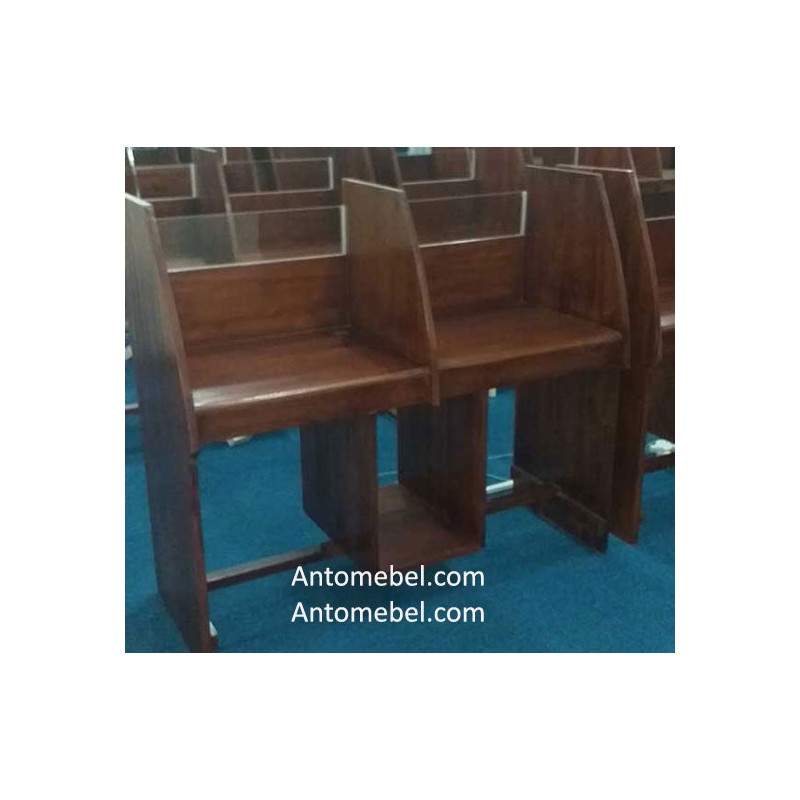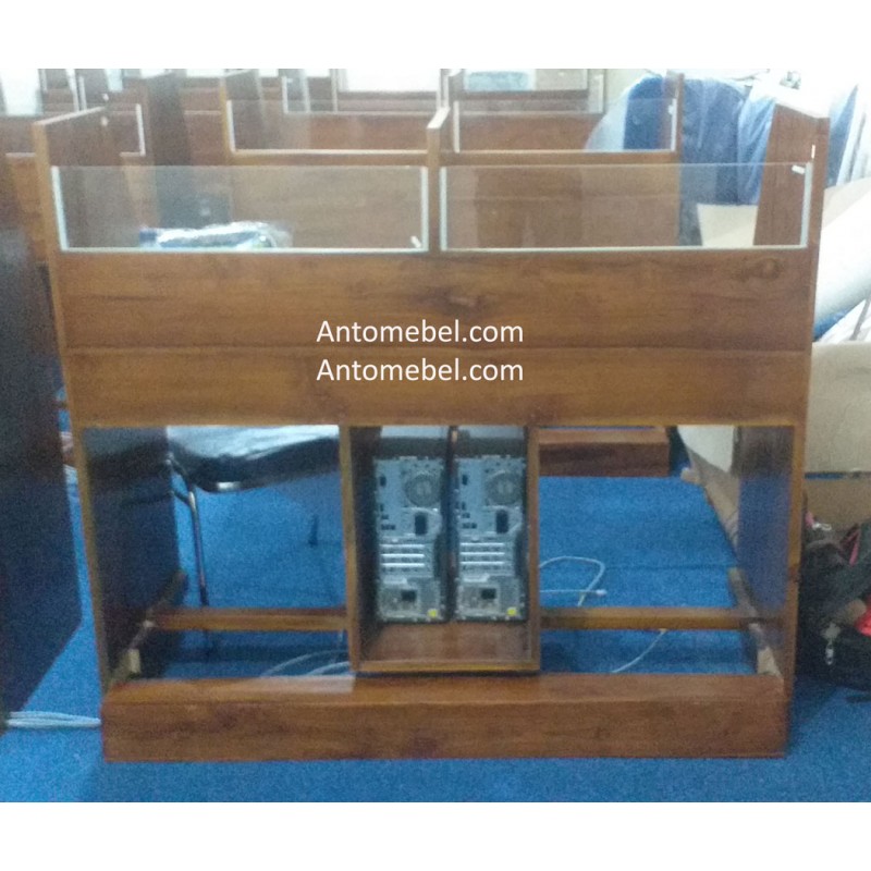 Ukuran meja lab bahasa P.140cm, L.57cm dan T.118cm. Tinggi meja tulis 75cm, berikut foto-foto pertahap pembuatan meja lab bahasa jati, dimulai dari foto sebelum finishing, proses finishing dan terakhir pemasangan kaca meja lab