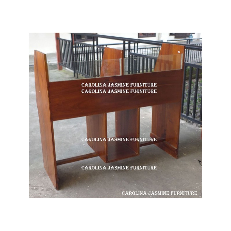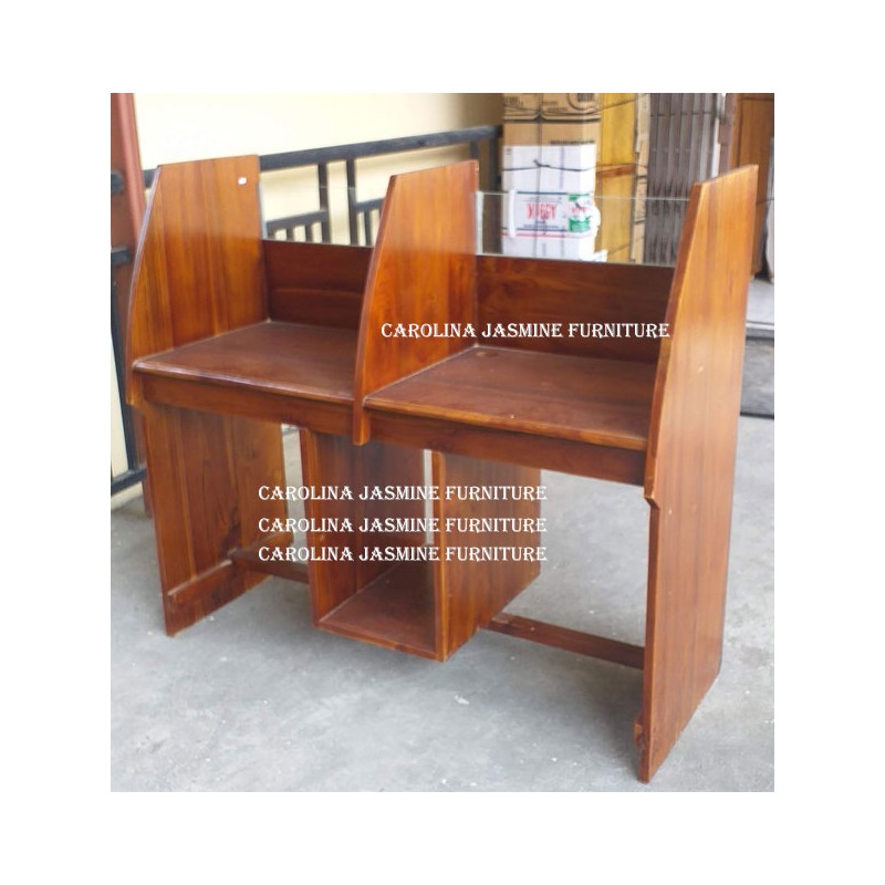Meja Lab Komputer Ini Di sebut Meja Lab Komputer Twin Booth karena untuk dua orang siswa. Terbuat dari Kayu Jati Solid dengan Finishing Plitur Natural. Menggunakan Packaging standar , dikirim Menggunakan Jasa ekspedisi. Pembayaran Bisa COD Sekolah atau Instansi