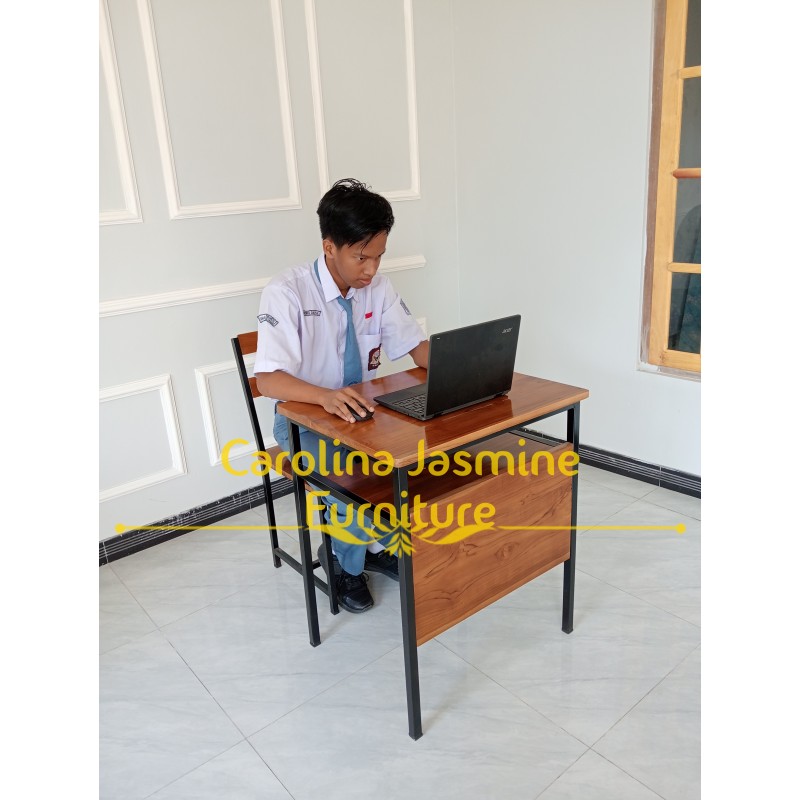 Meja sekolah bahan frame atau rangka dari besi hollow tebal dan kuat dikombinasikan dengan papan jati untuk alas tulis meja dan dudukan kursi serta sandaran. Dijamin awet, indah dengah harga bersaing.